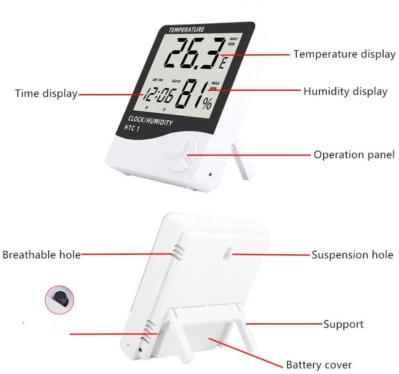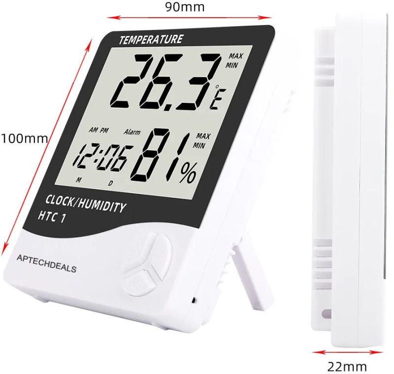 Themisto HTC-1 Digital Hygrometer Thermometer Humidity Meter With Clock LCD Display