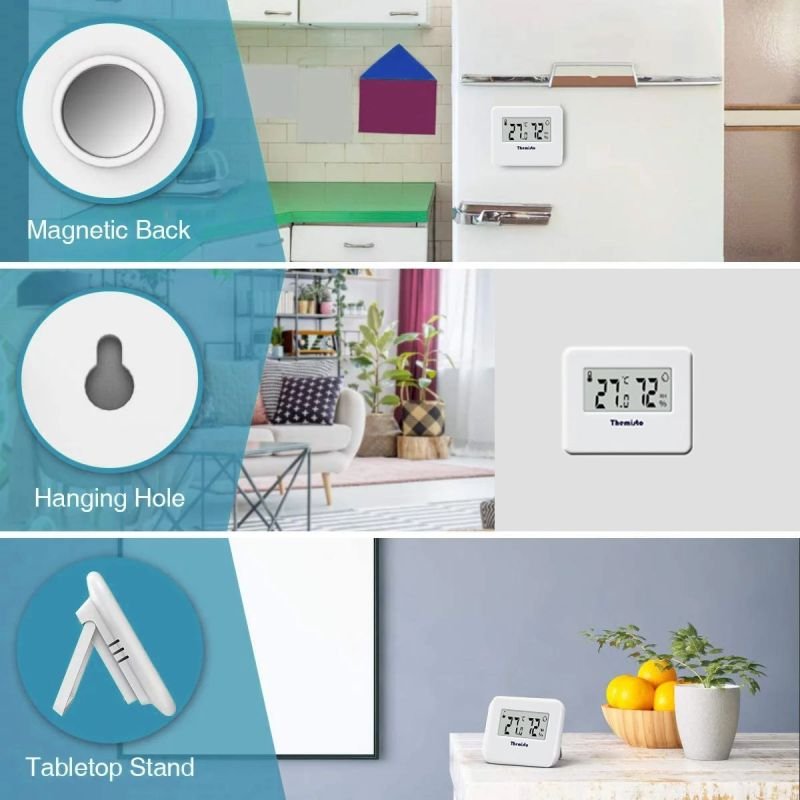 Specifications: Temperature Measuring Range: -10~50° / 14~122°F. Temperature Resolution: 0.1°. Humidity Measuring Range: 10%-99%RH. Humidity Resolution: 1%RH. Power Supply: 2 * 1.5V AAA Batteries (Included) (Battery color random delivery).