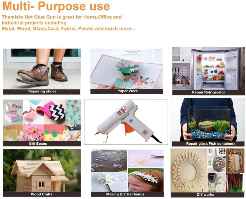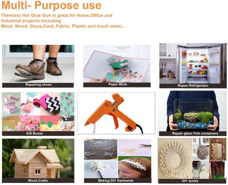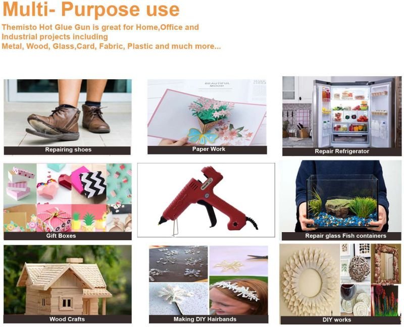Multi-Purpose Craft Glue Gun- Themisto hot glue gun can use at home, office and school crafts projects including metal, wood, glass, fabric, plastic, ceramics and so on.