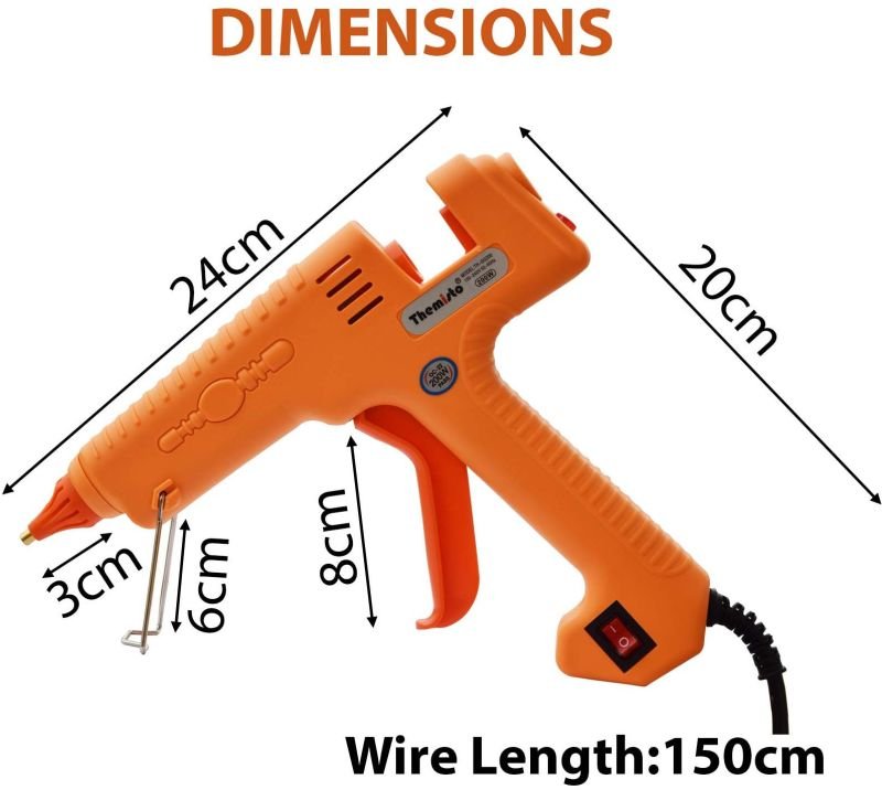 Heat Up Fast & Constant Temp – Themisto 150w Professional glue gun with High-End PTC thermal element. Make it only take 1-3 mins to heat up and fully ready to work. It is more efficient than traditional heat up system, helping you finish your work easily and quickly.
