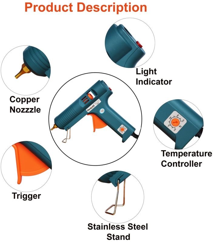 Handy, sturdy & reliable, Themisto glue gun features an ergonomic non-drip nozzle tip that ensures Themisto in home, commercial or business use, household and hobby projects PLUS economy in glue!