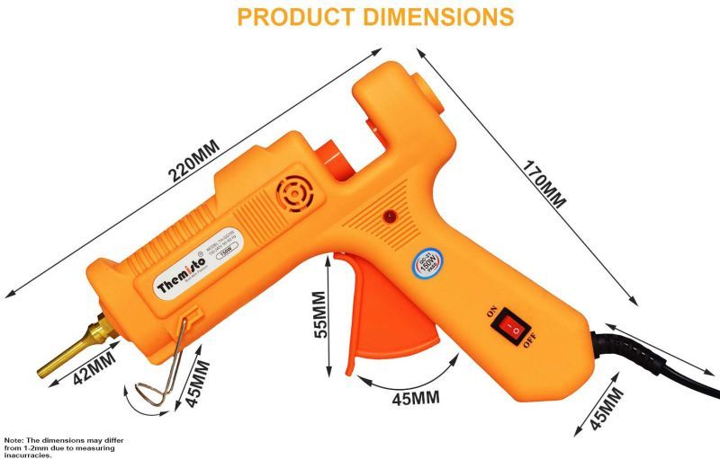Heat Up Fast & Constant Temp – Themisto 150w Professional glue gun with High-End PTC thermal element. Make it only take 1-3 mins to heat up and fully ready to work. It is more efficient than traditional heat up system, helping you finish your work easily and quickly.