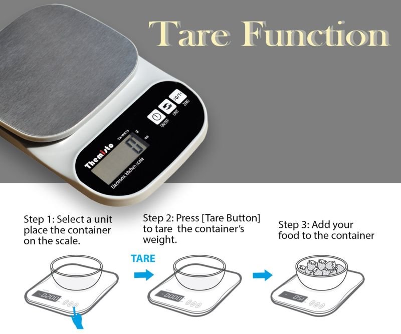 Tare Function: The built-in tare function allows you to subtract the weight of containers, simplifying ingredient portion control and recipe accuracy.