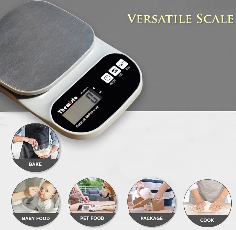 Precision Measuring: The Themisto Electronic Kitchen Scale offers accurate weight measurements in various units(gram & oz), ensuring your recipes are consistently on point.